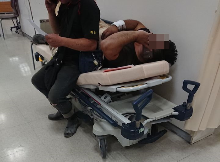 原PO也貼出一張照片說,照片中沒受傷的工人跟受傷的工人擠病床,「他說床髒了坐床就好,不要把椅子也弄髒了。」