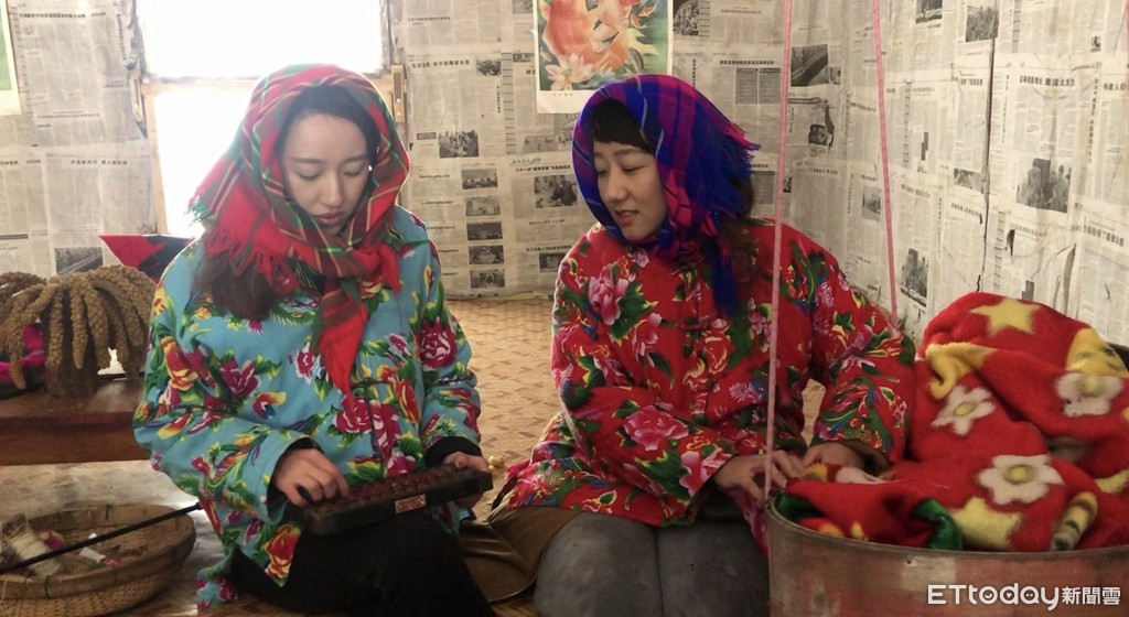 ▼遊客可以穿上現場提供的花衣裳拍照 。