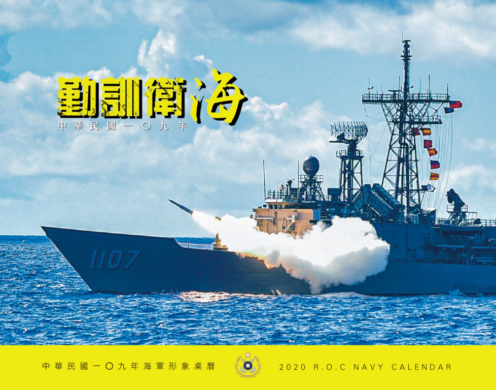 海軍2020年形象桌曆18日出爐,本次桌曆以「勤訓衛海」為主題,結合年度漢光演習、戰術總驗收、聯合登陸作戰訓練、敦支航訓、三軍聯合作戰訓練等重大演訓為主軸,規劃「勤訓精練」、「我武維揚」、「灘岸突擊」、「敦睦邦誼」、「聯戰尖兵」、「神鬼奇兵」、「台海屏障」、「海陸鐵漢」、「精準打擊」、「深海勇士」、「天馬神射」及「濱海護衛」等12個月份子題,完整呈現本軍官兵戮力戰訓操演的紀實畫面。