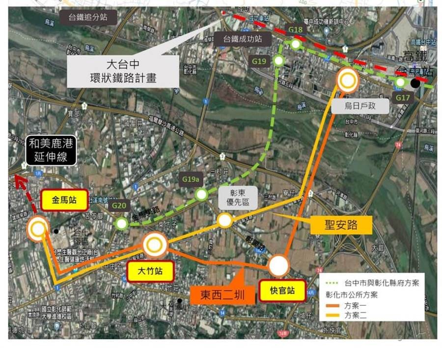 ▲中捷延伸到彰化,G20台化設站,「三鐵」共構的路線規劃。(圖/彰化縣政府提供)
