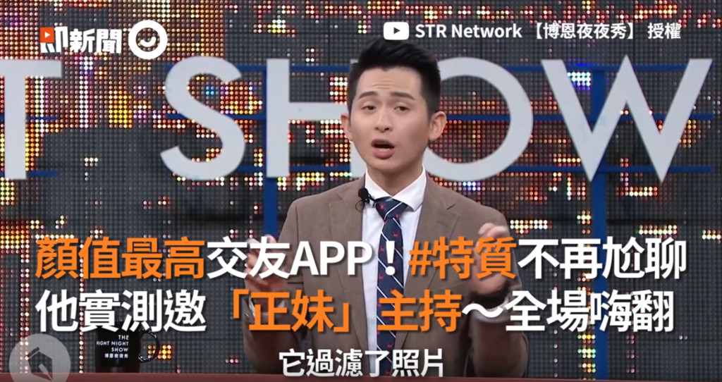 台灣最火紅的脫口秀《博恩夜夜秀》由曾博恩搭配助理主持賀瓏、酸酸、老K等,以「超嘴」社會批判、時事哏討論,,短短一年多就引起超多網友關注。各界政治人物包含總統蔡英文都爭相上場「被嘴」,幾乎場場爆滿。但近日博恩居然在脫口秀上大抱怨最近收視變低,都是因為主持群沒有正妹害的,現場拿起手機打開號稱「顏值最高的交友APP」Omi,馬上滑了3個正妹來現場面試,當高顏值正妹一到場立即引起現場民眾驚呼大喊,「感謝Omi讓我們看到這種正妹!」