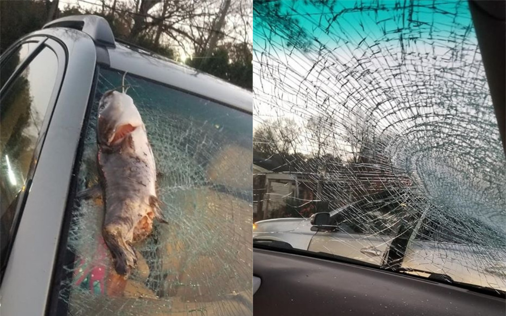 美國北卡羅來納州博福特郡(Beaufort County)沃爾森(Rhesa Walston),日前開車載女兒返家時,竟突然從天而降一條「鯰魚」直直砸落在前擋風玻璃上,讓母女倆驚嚇不已。她把照片貼在臉書後立即引發討論,網友直呼「比中樂透還狂!」