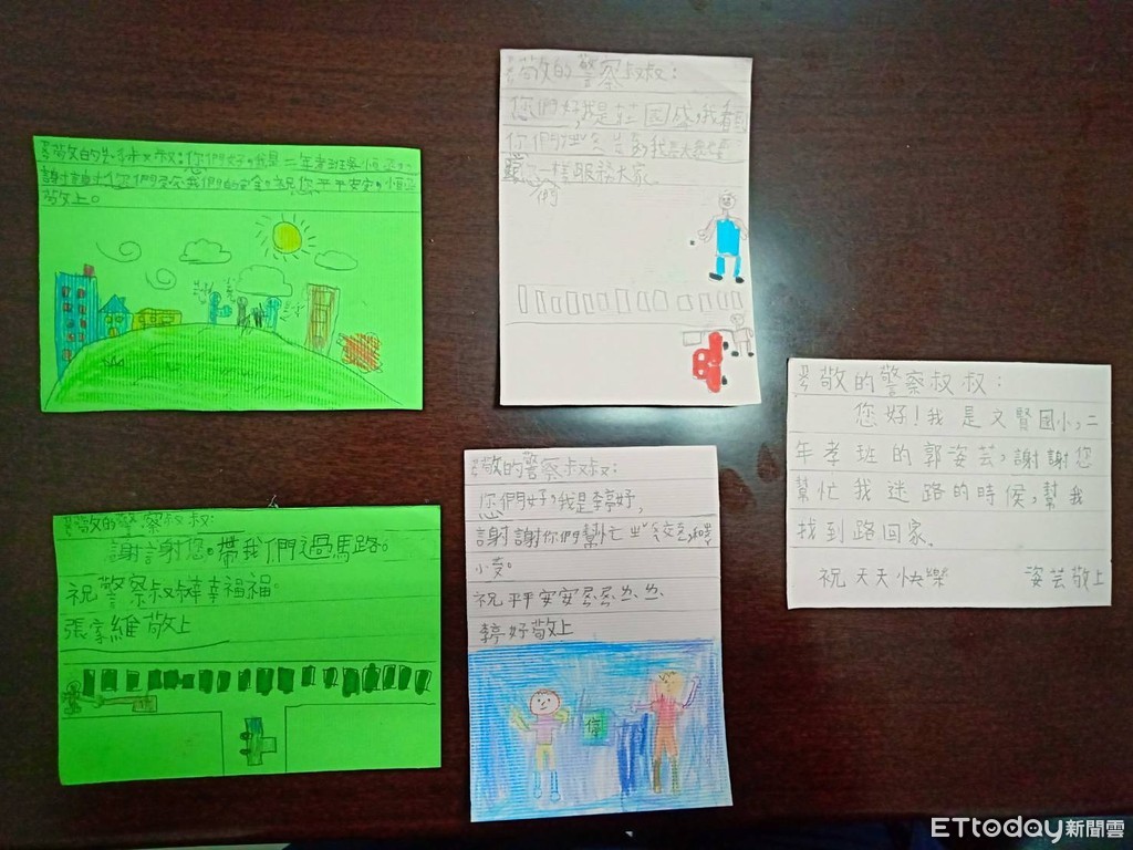▲學童參訪派出所後,寫了感謝卡片謝謝警察。(圖/記者翁進忠翻攝)