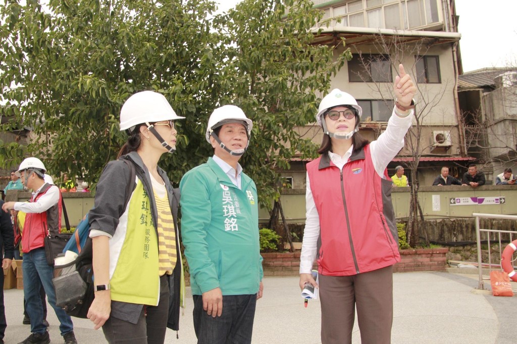 ▲吳琪銘考察三峽河岸工程 。(圖/吳琪銘辦公室提供)