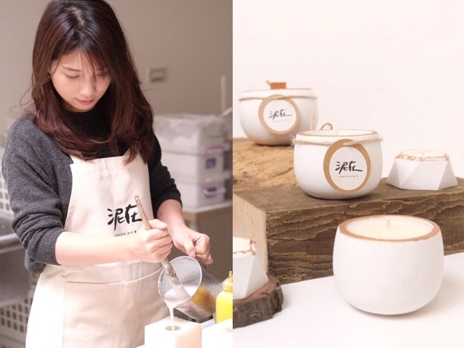 泥在的主打商品為水泥香氛蠟燭與小器、盆栽,其材料均使用回收廢棄水庫淤泥再製的「樂土」