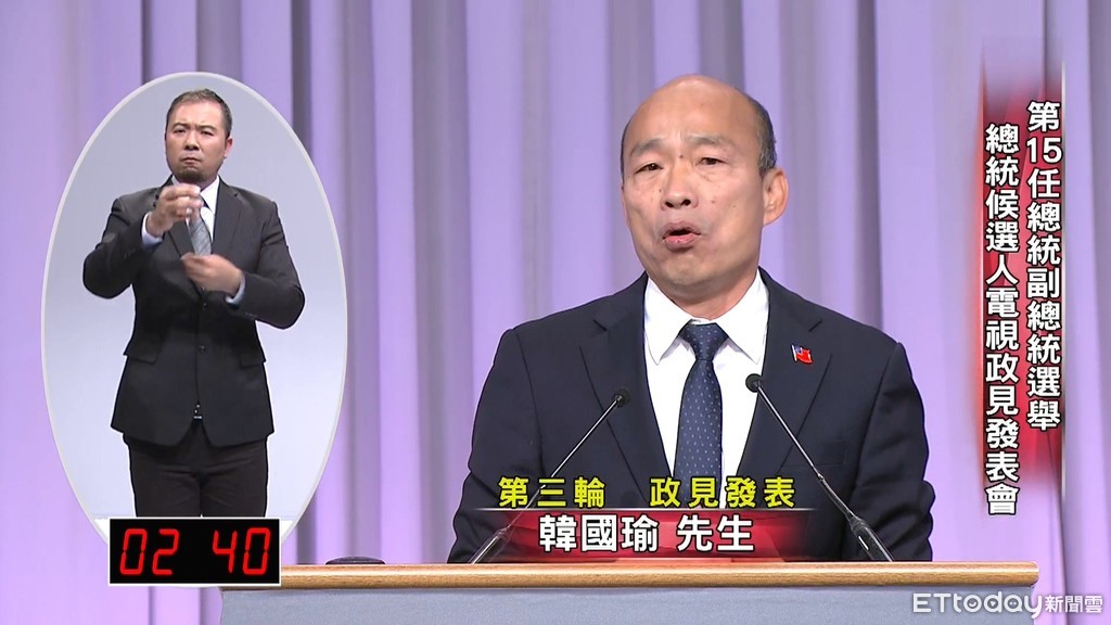 ▲第3場總統候選人電視政見發表會,韓國瑜。(圖/中選會提供)