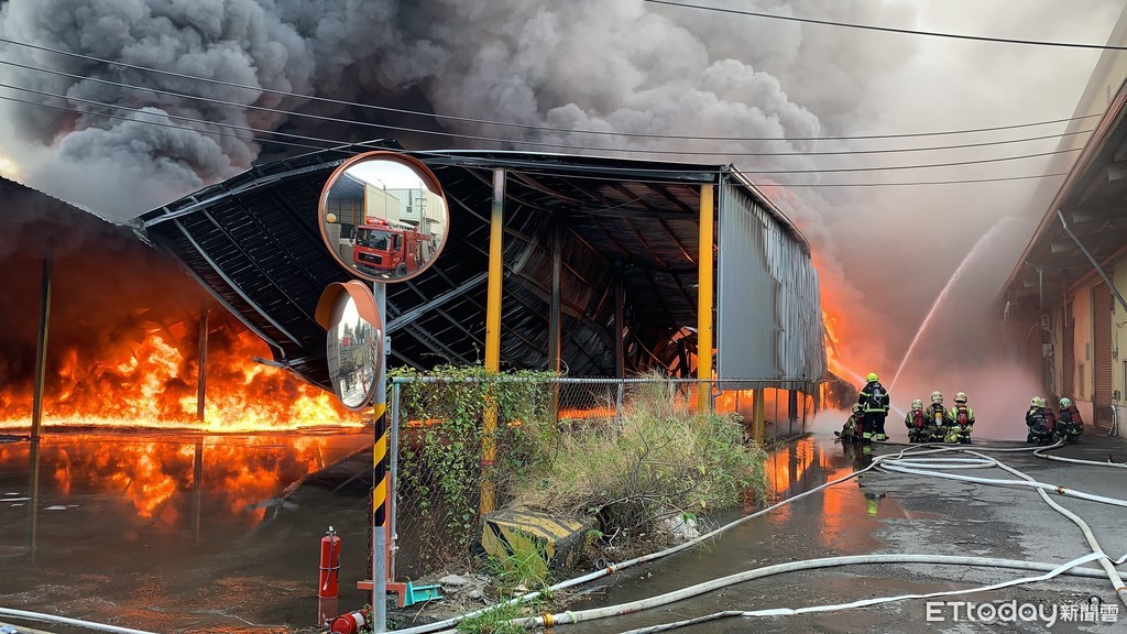 消防人員到場時即發現倉庫全面燃燒,因內部有大量塑膠棧板堆積,火載量非常大,火勢已向四周延燒,消防人員隨即於火場第一、三、四面佈署多條水線搶救,多次試圖切斷火流阻止延燒。但當時火場燃燒狀況異常猛烈,雖然第一時間於第四面架設砲塔及佈署多條水線救災,仍然擋不住猛烈輻射熱,造成3棟鐵皮工廠燃燒。