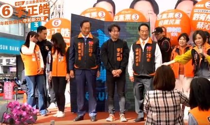 李正皓在中和競選總部的成立大會,請來宋楚瑜和郭台銘、親民黨不分區立委參選人劉宥彤、宋楚瑜競辦發言人于美人等。宋楚瑜提到,立法院現狀需要新人進入國會講話,台灣不要政黨利益,真正的民意兩岸和平、確保自己的民主價值,才是所謂的「中間力量」。