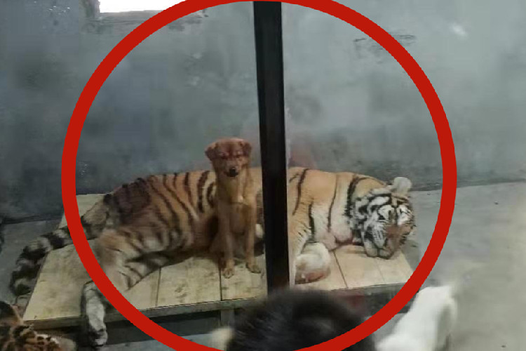 大陸微博日前有一位網友PO文表示,家附近的百貨公司開了一間室內動物園,環境相當惡劣,「這是虐待」。他還同時PO了一張圖片,圖片顯示,這間動物園竟把兩隻老虎和三隻狗關在一個籠子裡。照片流傳開後,網友紛紛為小狗擔心,指責「這是給老虎養糧食」,「簡直瘋了。」