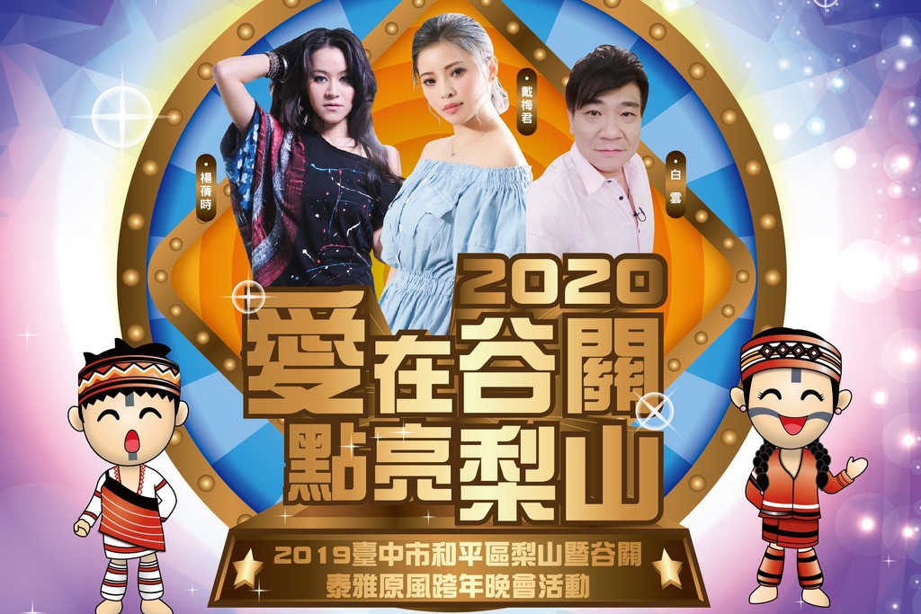 2019臺中市和平地區跨年系列活動開跑,今(31日)分別在谷關、梨山同時舉辦雙主場跨年晚會,隔天元旦早上8點30分梨山賓館前廣場舉辦升旗典禮。中市府觀光旅遊局、交通部觀光局參山國家風景區管理處及臺中市和平區公所邀請全國民眾一起來體驗最高海拔、最原味的梨山谷關跨年。