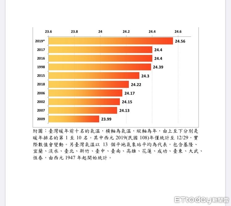 ▲2019年台灣均溫創新高。(圖/中央氣象局提供)