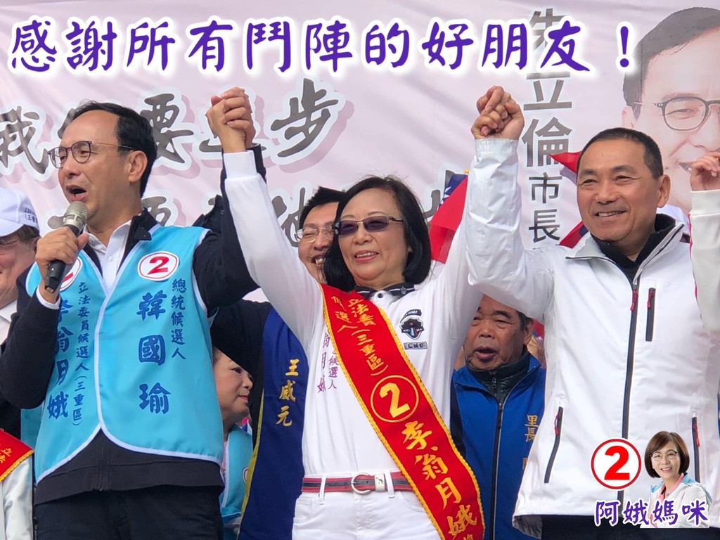 新北市第3選區(三重)立委候選人拚最後階段拉票,前新北市長朱立倫上午現身三重,隨李翁月娥的車隊一起掃街拜票,更誇她這幾十年來在地方的建設,緊接著下午換新北市長侯友宜接棒,特地請假1小時幫李翁月娥輔選,希望能搶下三重這綠營鐵票倉。