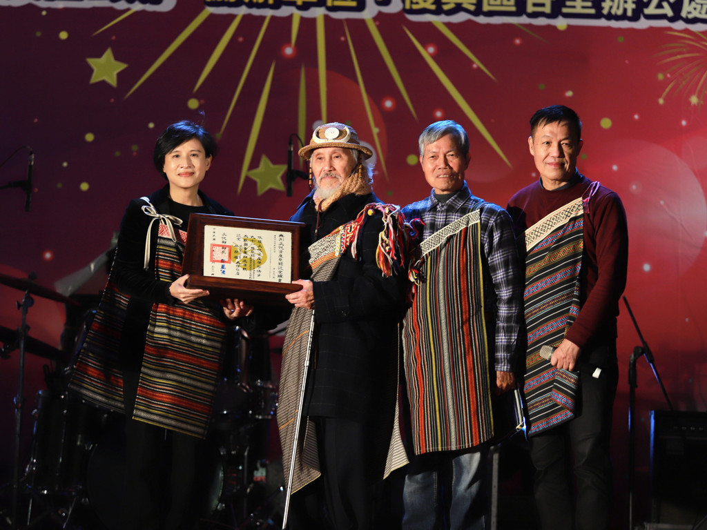 ▲文化部長鄭麗君(左)在跨年夜親送「重要口述傳統」登錄認定證書予保存者 Watan Tanga林明福。(圖/文化部提供)