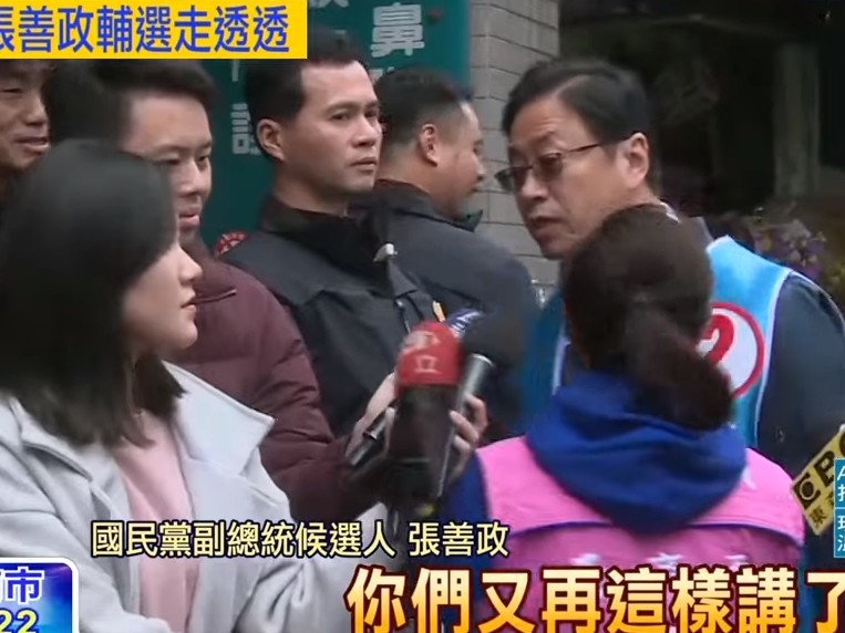 ▲張善政被媒體問到爆氣,旁人趕緊將他帶走。(圖/翻攝東森新聞)