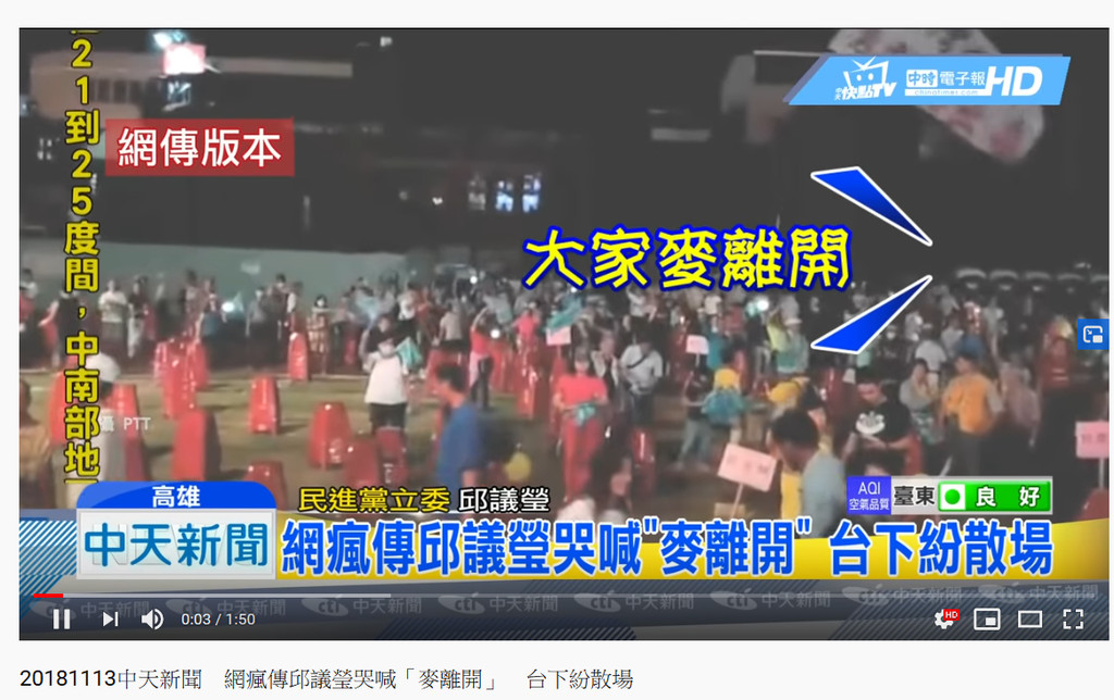 ▲中天新聞網瘋傳邱議瑩哭喊「麥離開」(圖/翻攝YouTube)
