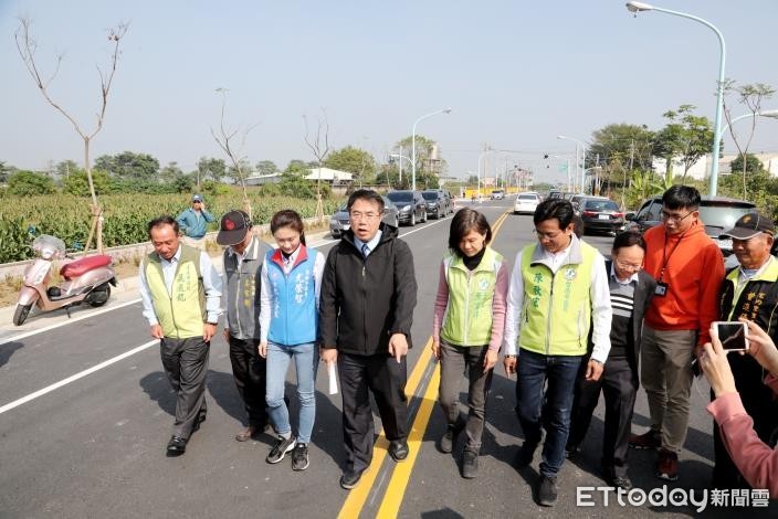 ▲台南下營南外環道路工程完工,市長黃偉哲偕同地方民代視察工程品質。(圖/記者林悅翻攝)