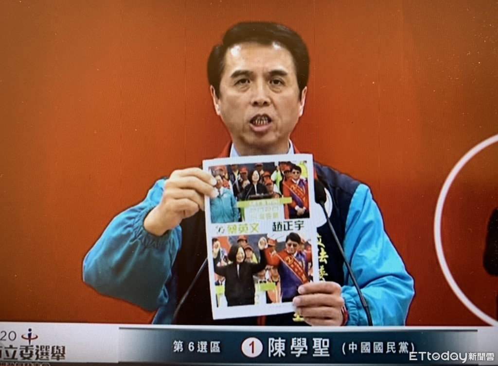 ▲桃園市選委會3日舉辦公辦點事政見發表會,第六選區候選人陳學聖指趙正宇與小英手牽手,與民進黨友好。(圖/記者沈繼昌翻攝)