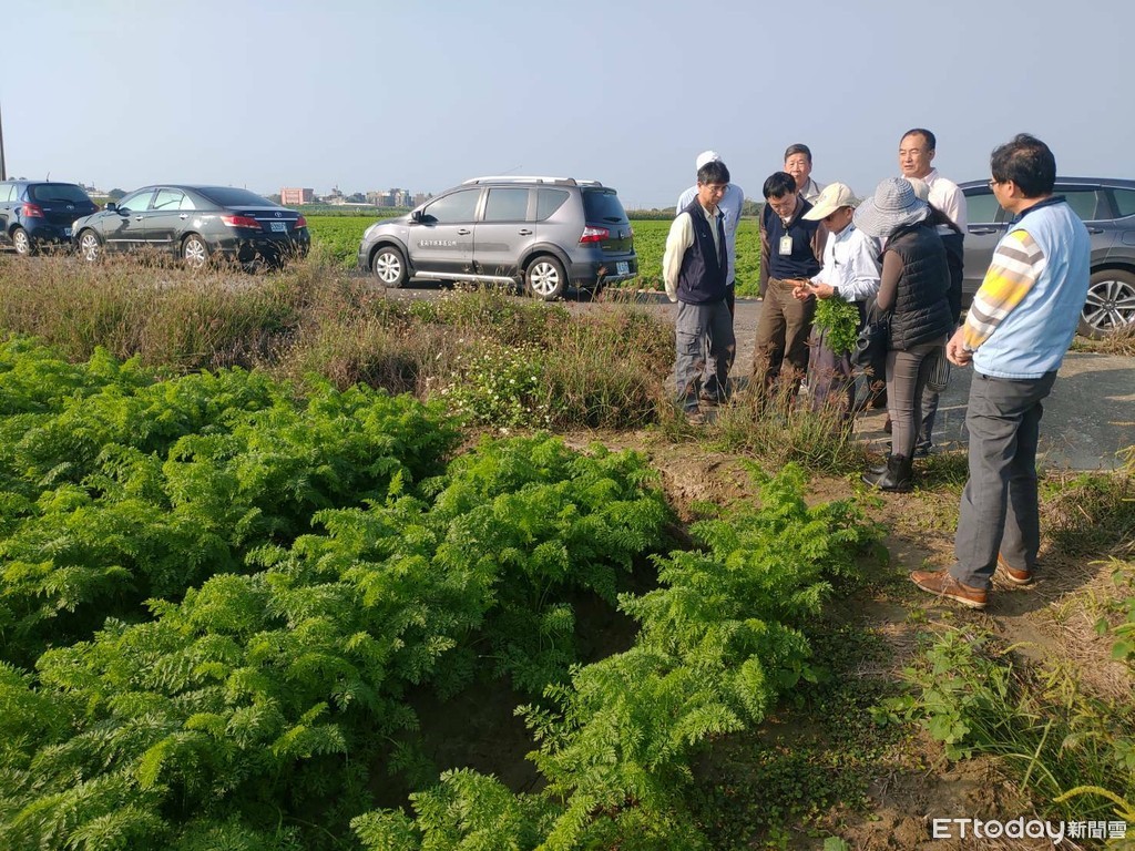 ▲農糧署南區分署及區公所組成勘查小組,前往將軍區會勘胡蘿蔔,經勘查胡蘿蔔葉部呈現嚴重萎凋,農業局積極爭取現金救助。(圖/記者林悅翻攝,下同)