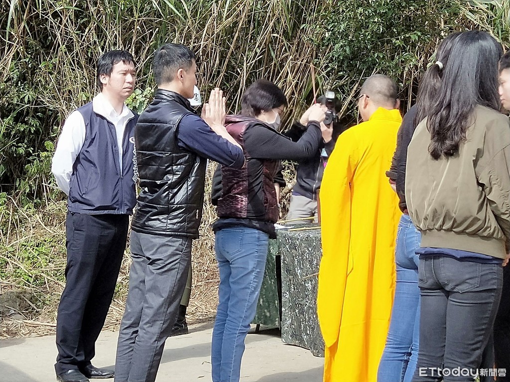▲黑鷹失事招魂現場,總長兒子一度擲無筊,直到夫人上前才終於擲出聖筊。(圖/記者游芳男攝)