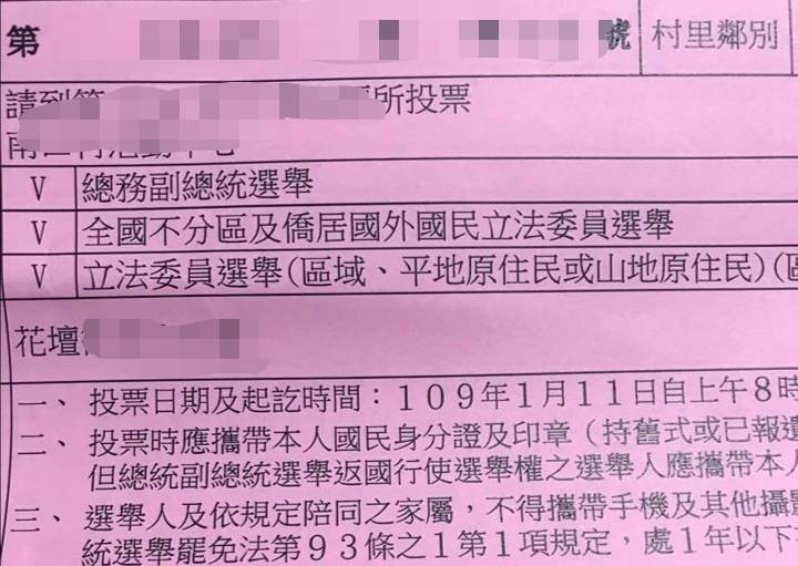 ▲花壇鄉投票通知單將總統印錯成總務。(圖/民眾提供)