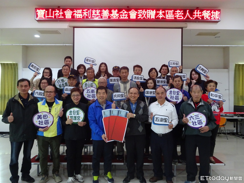 新北市金山區在地企業財團法人新北市私立金寶山社會福利慈善事業基金會回饋鄉里,3日於金山區公所舉行捐贈活動,致贈金山區老人共餐據點且每月至少共餐1次以上,1年3節(春節、端午、中秋),每節3000元獎勵金,希望勉勵現行各共餐點及鼓勵2020年有意願辦理的單位,持續照顧金山區的老人,實在揪甘心!