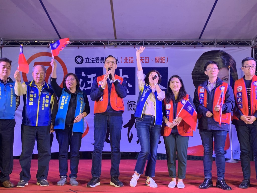 ▲郝龍斌為挺國民黨立委候選人汪志冰站台。(圖/記者林育綾攝)