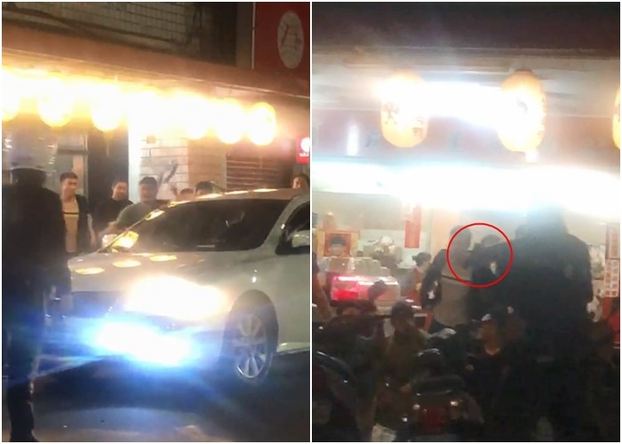 「黑社會」臉書團也po出目擊民眾拍下的影片,畫面中,只見薑母鴨店門口圍了一群人,警車不斷鳴笛示警,目擊民眾不斷驚呼「互砍了,帥喔!拿刀了,砍了,喔~」、「X你X!弄到我的車你就死了」。