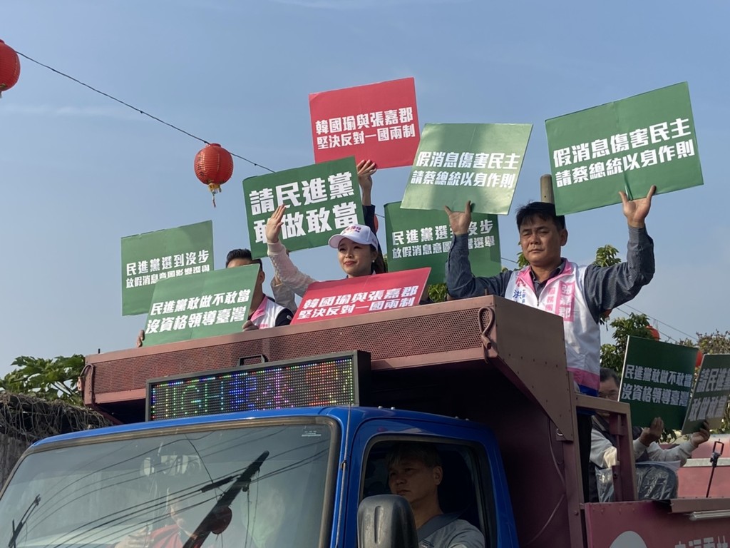 張嘉郡強調,自己熱愛的國家就是中華民國,堅決反對一國兩制。蔡總統說假消息傷害台灣的民主,結果民進黨在雲林從候選人到縣黨部都用假消息來抹黑、抹紅她,用奧步打選戰,她表示,蔡總統來雲林輔選蘇治芬這麼多次,就是為了守護這種出奧步與放假消息的候選人、守護假消息與奧步嗎?請蔡總統不要雙重標準,請出來主持公道,否則就是說謊。