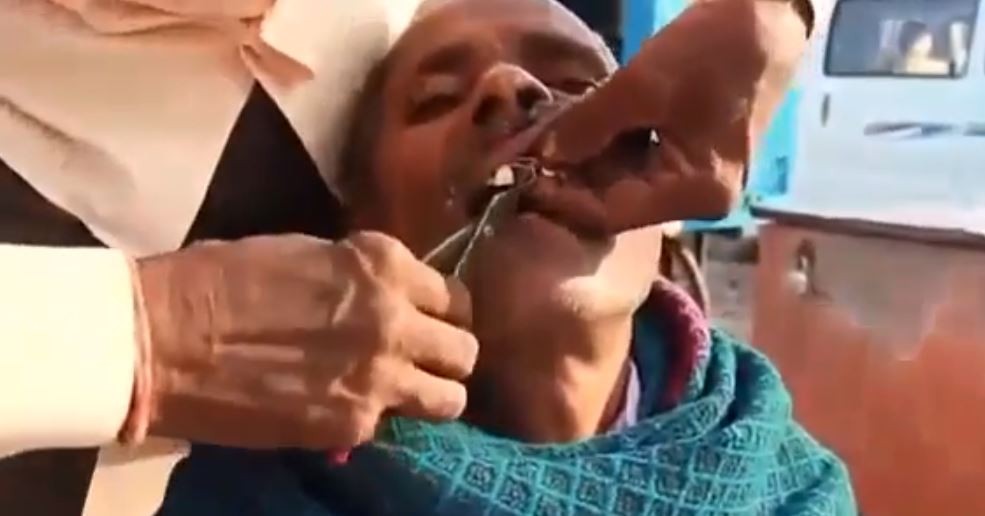 除了透過街頭醫生來拔牙外,印度北方城市賈姆穆(Jammu)的一戶家庭還有一種傳承百年的神秘藥水,能夠用來幫人快速拔牙,只要拿棉花沾上神秘藥水,再塗抹在牙齒的周圍,短短不到1分鐘時間,牙齒就能馬上被拔除,事前完全不必使用麻醉藥,患者也不會感到痛楚或出血。