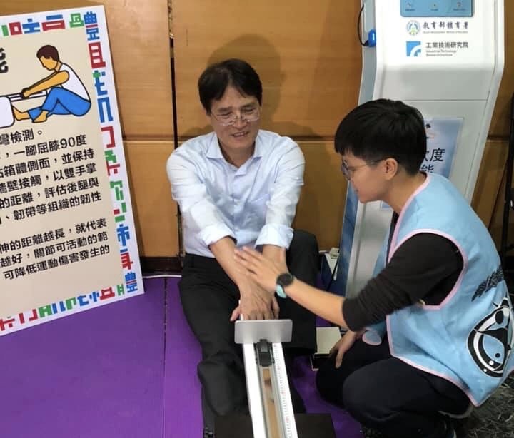 ▲「科技體適能檢測」中的柔軟度適能檢測。(圖/工研院提供)