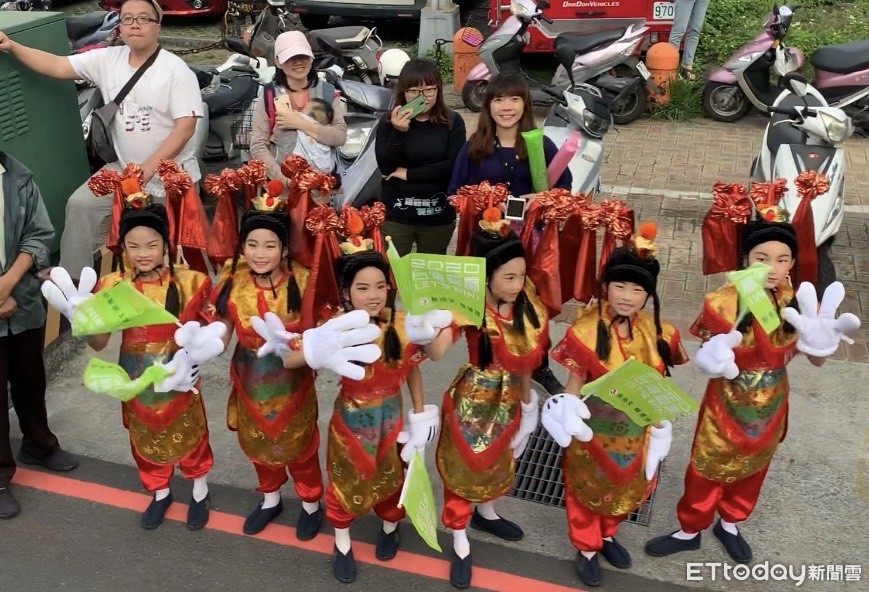 除了台灣人熟悉「台味十足」的三太子,其中還有幾位「小小三太子」,手拿小英競選標語喊凍蒜,模樣超萌。