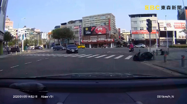 畫面中可見,事發的中山一路其實是4線道,當時黑色轎車行駛在最內側,卻突然要右轉大同一路。中間車道另一輛轎車見狀,立刻減速退讓,但外側車道一名機車騎士疑似視線死角,根本來不及閃避,當場與轎車右側車頭對撞,連人帶車噴飛20公尺。
