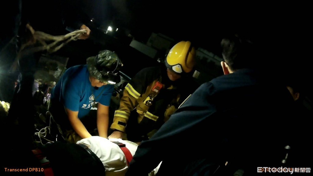 ▲ 警方爬上屋頂將男子壓制後,從屋頂由119醫護人員吊掛下來緊急送往署東醫院急診。(圖/記者楊鈞典翻攝)