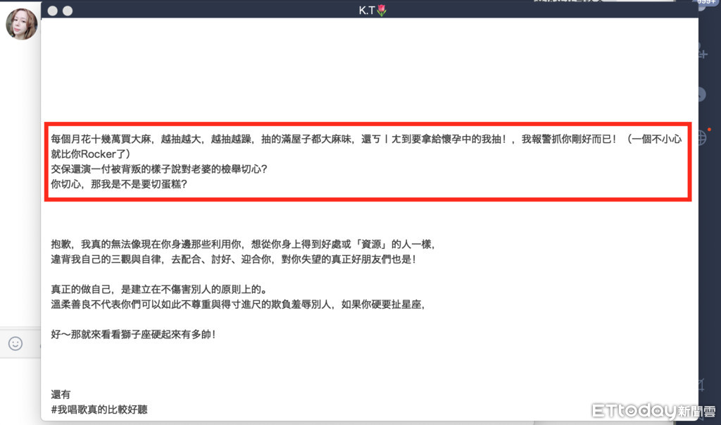 Keanna也想跟謝和弦說:「抱歉,我真的無法像現在你身邊那些利用你,想從你身上得到好處或資源的人一樣,違背我自己的三觀與自律,去配合、討好、迎合你,對你失望的真正好朋友們也是!真正的做自己,是建立在不傷害別人的原則上的。溫柔善良不代表你們可以如此不尊重與得寸進尺的欺負羞辱別人」。
