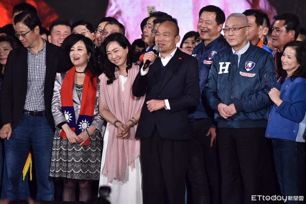 ▲韓國瑜、李佳芬合體出席凱道造勢晚會。(圖/記者李毓康攝)