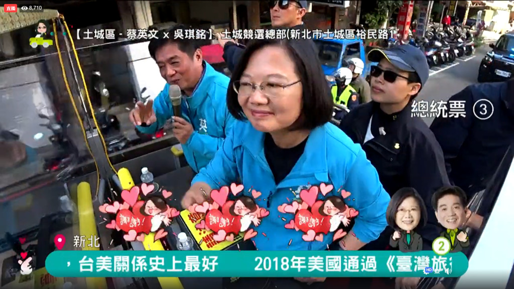 2020選戰倒數不到24小時,今(10日)早上,民進黨總統候選人蔡英文展開新北市「勇敢自信 護台同行」車隊掃街。由於土城、三峽選區加入第三勢力,形成三腳督的局面,也是全國最受矚目的選區之一,因此蔡英文第一站特地選擇從土城出發力挺立委候選人吳琪銘,展現「新北要贏、土城先贏」的氣勢。