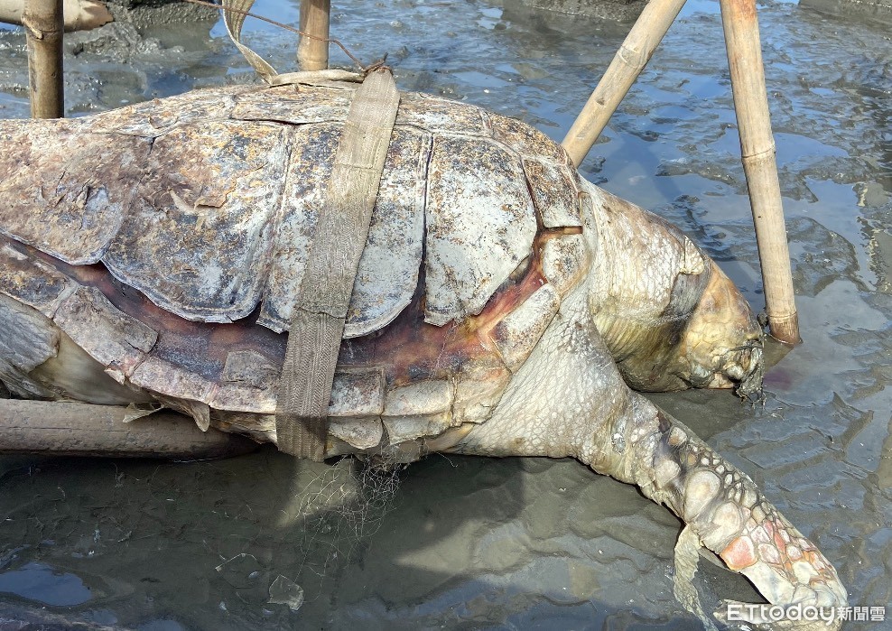 ▲彰化安檢所在漢寶海域發現一隻死亡多時的赤蠵龜。(圖/海巡署中部分署第3岸巡隊提供)