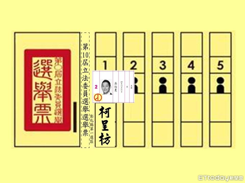 ▲彰化1名農婦為支持北市立委候選人吳怡農,竟把吳怡農照片剪下,投票時貼在彰化立委選舉票上。(示意圖/記者徐愷昕製)