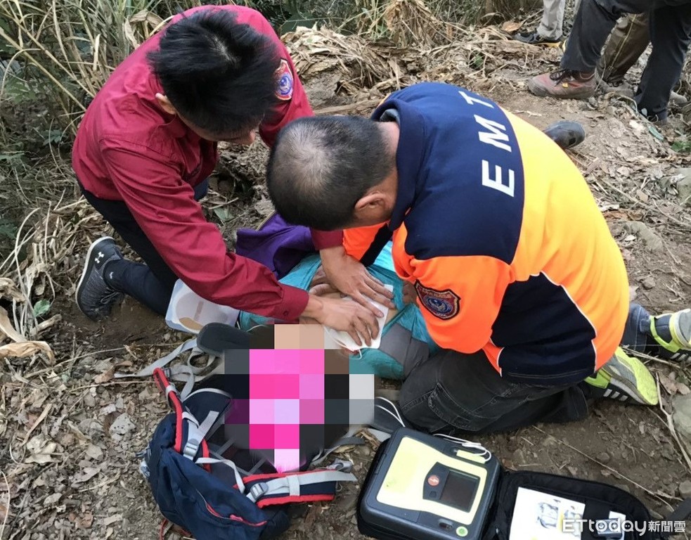 台南市消防局於12日下午1時15分接獲高雄市消防局轉報,位於台南南化區烏山登山步道,有1位50多歲男子昏倒疑似OHCA(無呼吸心跳),119中心馬上派遣南化分隊出動2車4人前往搶救。