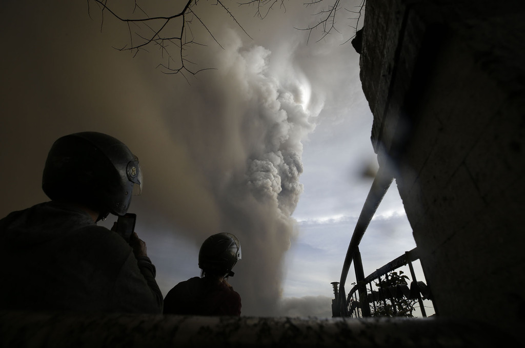 ▲塔爾火山位在菲律賓首都馬尼拉南方約70公里,火山灰影響到了馬尼拉市區。(圖/達志影像/美聯社)