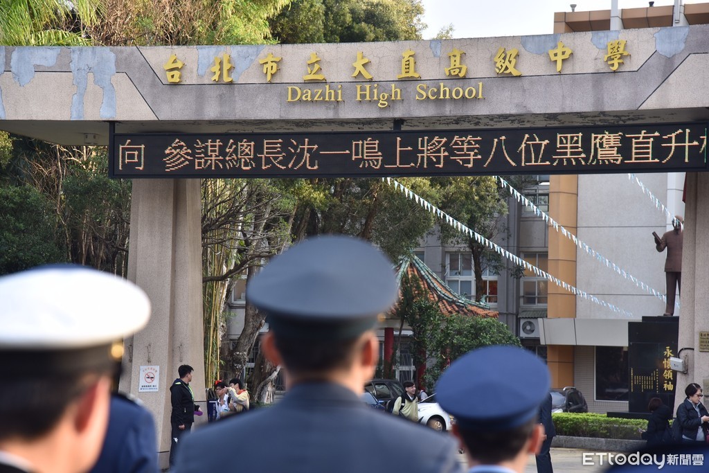▲大直高中校門LED跑馬燈向沈總長等人致敬。(圖/記者李毓康攝)