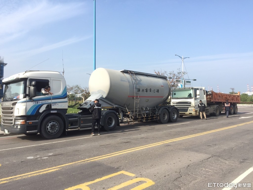 ▲警方及監理所於台北港實施聯合稽查,2小時內攔查25車。(圖/記者陳豐德翻攝)