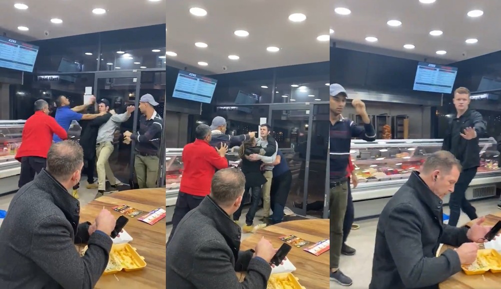 綜合外媒報導,事發於10日晚間一間名為「Ken's Kebabs」的串燒店,當時一名灰衣男子和店員發生口角,另一名男子則是不斷踹櫃台桌子,隨後演變成兩方人馬激烈的纏鬥,期間有不少顧客上前勸架,但52歲的淡定大叔希爾(Chris Hill)卻從頭到尾在一旁看戲,安靜地坐在位子上嗑著薯條。