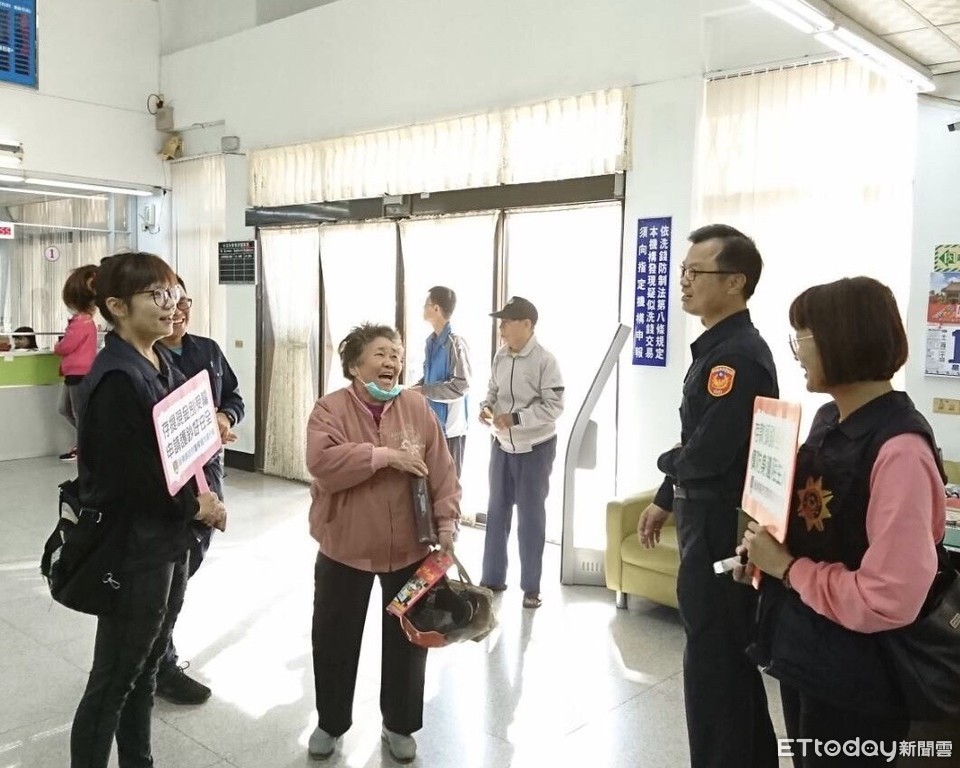 蔡分局長等員以分局自製手牌向在場洽公之鄉親宣導「存款領錢要小心,慎防身邊陌生人」、「存提現金別受騙,申請護鈔好安全」;並提醒各機構行員,若有民眾巨額匯款,應通知員警到場關懷,避免鄉親被騙。