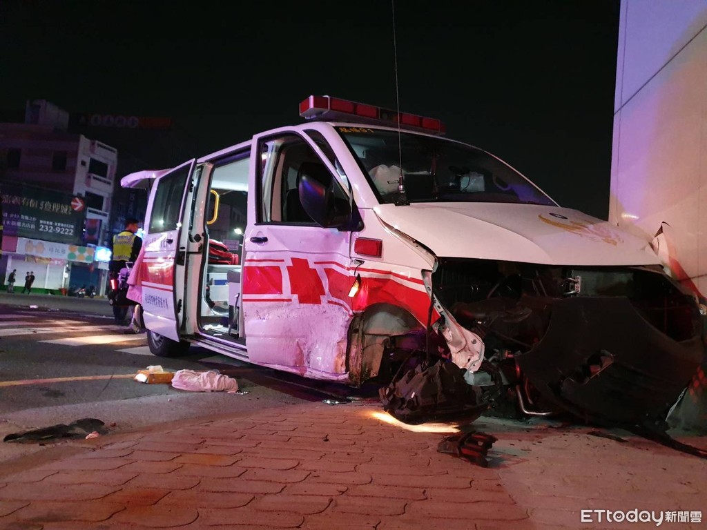 抵達現場時,為一輛民眾自小客車與送醫途中救護車發生交通事故,轎車車頭全毀,救護受到強烈撞擊,連右前輪都掉落在地面,現場零件散落一地。
