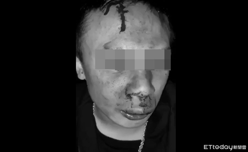 ▲竹聯幫仁堂明仁會會長被打,滿頭是血還要拍片道歉。(圖/民眾提供)