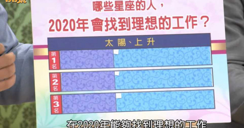農曆年將至,許多人可能都有年後換工作的想法。星座專家艾菲爾就在《命運好好玩》中解析,2020年「會找到理想工作」的前三名星座僅供大家參考,不妨看看自己的上升、太陽星座有沒有上榜。