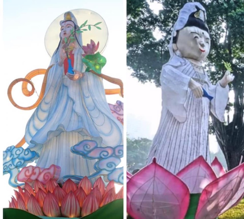 高雄燈會延續去年「金銀河」的罵名,今年的「雙金迎春.愛高雄」也被批得慘兮兮,其中宗教燈區的觀音蓮花燈等,因為做工粗糙被網友譏諷像法會。平平是觀音像,對比這次屏東細節精緻、線條流暢的觀音,讓不少網友直笑高市府的燈會「審美觀有跟沒有之間」、「阿彌陀佛」、「差真多」。