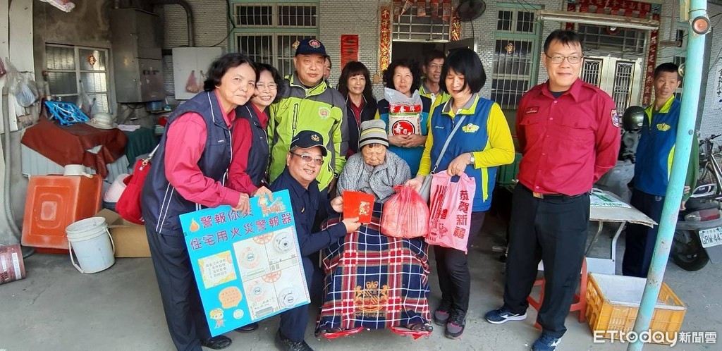消防安南分隊針對安南區總頭寮社區身心障礙及百歲長者展開年終宣導,由發展協會理事長、消防局、警察局與協會志工等各單位,一同前往社區弱勢族群及2名百歲人瑞家中進行歲末慰問、關懷生活起居,消防防火宣導並致贈慰問品以表達關懷之意。