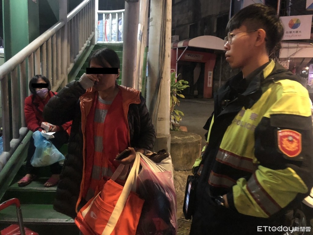 ▲雙胞胎姊妹流落街頭,坐在陸橋樓梯間無助哭泣,警方上前關心。(圖/記者陳雕文翻攝)